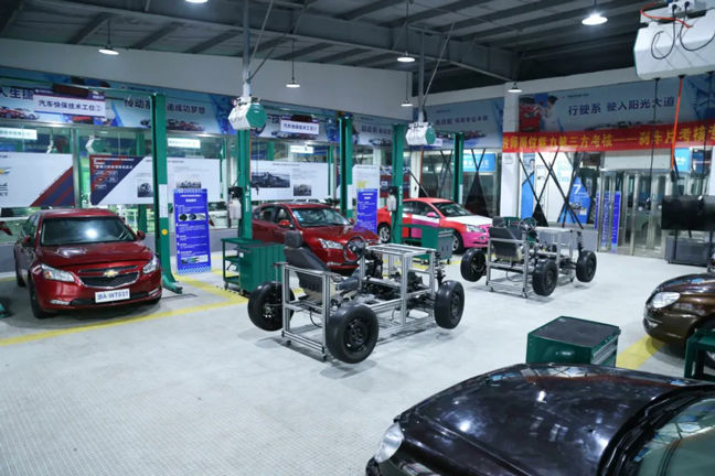 整车实训中心整洁空旷,老师们每天穿梭在这些区域为大家上直播课程。