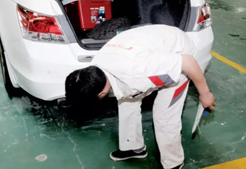 打开行李舱盖,钣喷车间总检需要检查各个部件的安装情况,在确认这2个部位的钣金维修操作不存在问题后,需要使用记号笔在被维修部位附近做好检查通过的标记。而对于被维修车辆后保险杠,钣喷车间总检需要检查其安装是否牢固,需要特别注意检查后保险杠的下沿是否合格。