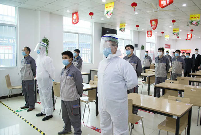 注:模拟食堂演练,老师们依次有序排队取餐、就餐