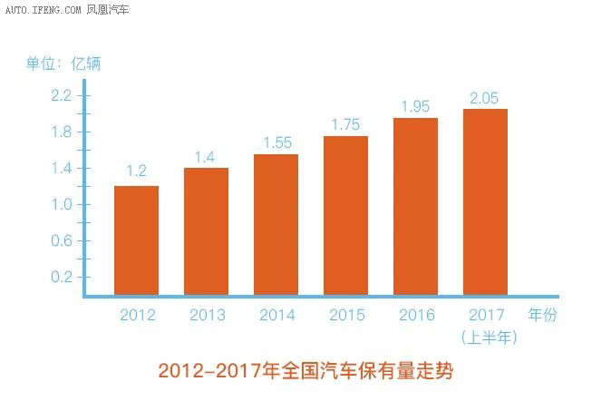 从目前的汽车市场上来看,在近五年,我国的汽车保有量以年均10%以上的速度在增长,截止2017年上半年,我国的千人保有量约为146辆,但从与主要发达国家超500辆和世界平均水平的183辆相比,还是差的很远,所以在很长一段时间内我国的汽车保有量还会保持高速增长.