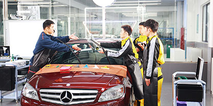 裁膜贴膜项目工单式分组实训教学,理实一体化,保证了学生的实践操作能力。