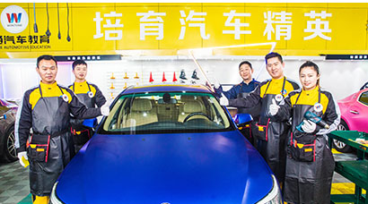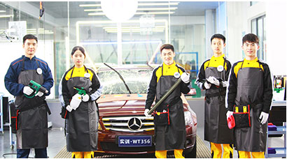 A学段 第一步:漆面处理,学习项目包括洗车,打蜡、封釉,抛光、轮毂清洗B学段 第二步:贴膜学习项目包括刀工联系、各种贴膜练习